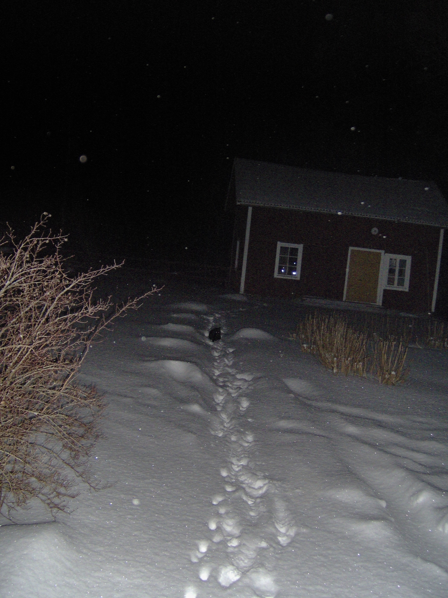 husgrunden och följde med mig in. Små steg som följde mina steg i